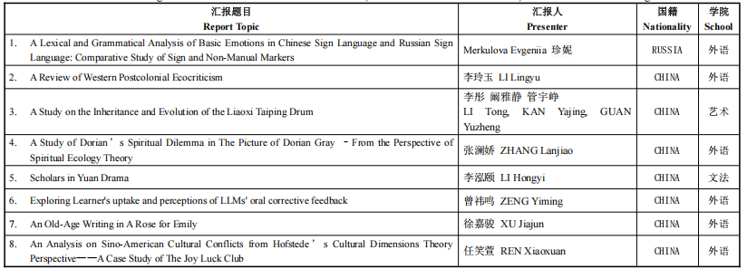 我院硕士研究生在分论坛演讲中沉稳从容、思维敏捷、口齿清晰、专业基础扎实,探究问题前沿,赢得评委一致好评。这不仅是我院研究生在跨部门平台上学以致用的生动写照,更充分展现了外语学子参与国际学术交流的自信、昂扬向上的精神风貌与专业风采。