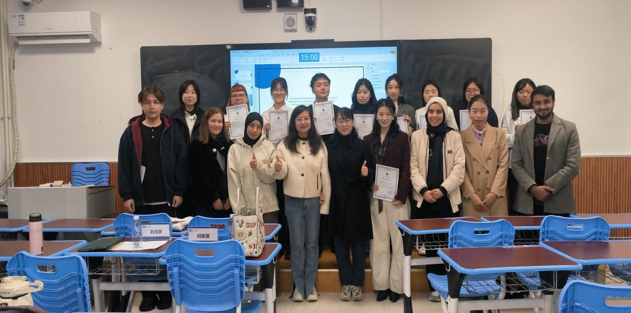 2025年10月23日下午,由燕山大学国际教育学院主办的“学在中国·燕山大学第五届中外研究生学术交流论坛”成功举办。本届论坛以“燕鸣寰宇——多元文化背景下的学术对话与融合”为主题,分为理工类、管理学类、文学语言学艺术学等4个分论坛。来自10个学院的200余名中外研究生及导师代表参加论坛。我院研究生珍妮(俄罗斯)、李玲玉、张澜娇、曾祎鸣、徐嘉骏、任笑萱等中外研究生8人参加了文学语言学艺术学分论坛,我院硕士生指导教师刘鸿宇教授、闫继苗副教授担任了外语与艺术分论坛评委。