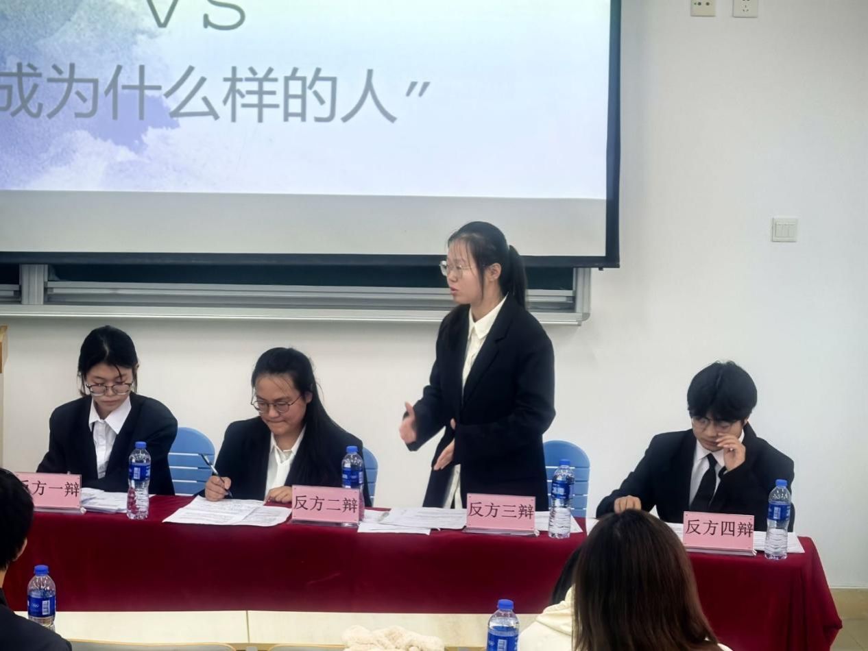 反方则从建构性立场出发,倡导青年应积极塑造自我,成为有理想、有担当的时代新人。他们指出,理想是推动个人与社会前进的核心动力,青年应当以崇高的目标引领行动,在实践中锤炼品格、提升能力。反方四辩杨森同学的结辩语掷地有声:“青年应以理想助推人生前进。唯有心怀星辰大海,才能在现实的浪潮中破浪前行。”
