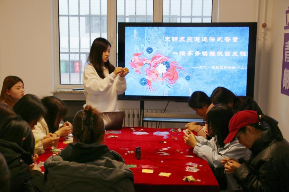 为拓展学生对中西方文化的认知,厚植文化底蕴,促进文明交流互鉴,外国语学院于2025年11月22日下午15:00在燕山大学“寓见文化”一站式学生社区工作站成功举办宋锦与法式香薰跨文化体验活动。通过沉浸式体验,学生们在传统宋锦的东方雅致与法式香薰的浪漫风情中,深切感受了文化的交融,共同诠释了“各美其美,美美与共”的绚丽篇章。本次活动邀请2023级法语专业刘亦菲和柳静怡作为主讲人。