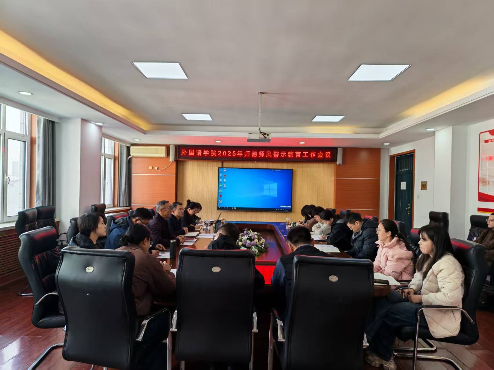 11月26日,外国语学院在人文馆417会议室召开2025年师德师风警示教育工作会议,学院领导班子成员、科级干部、党支部书记、系主任、专业负责人、辅导员参加会议。会议由学院党委书记屈晓阳主持。