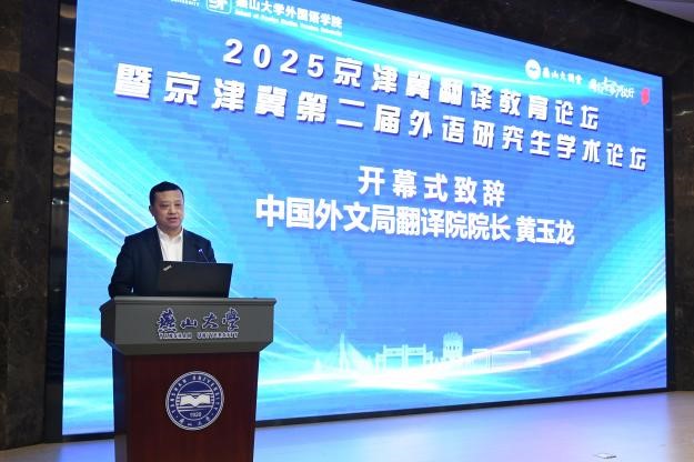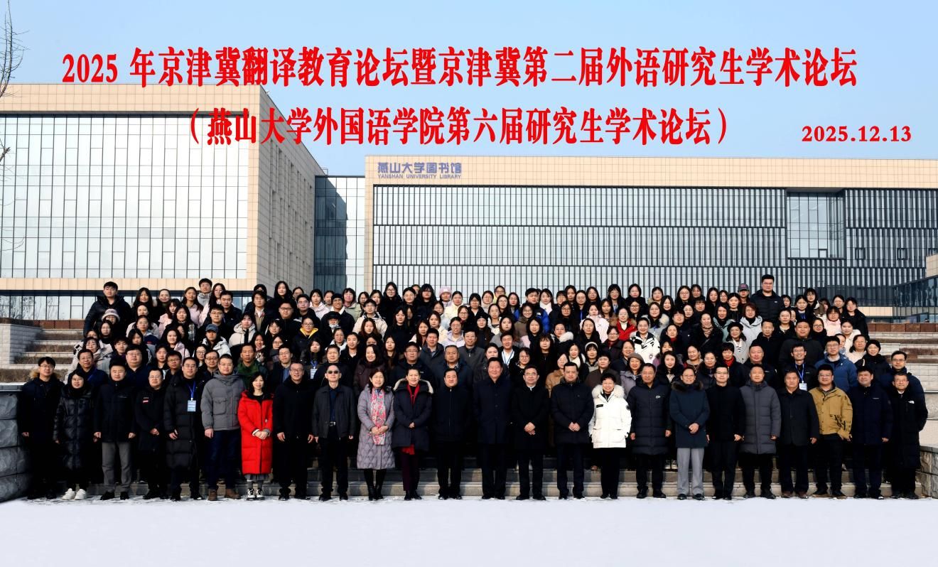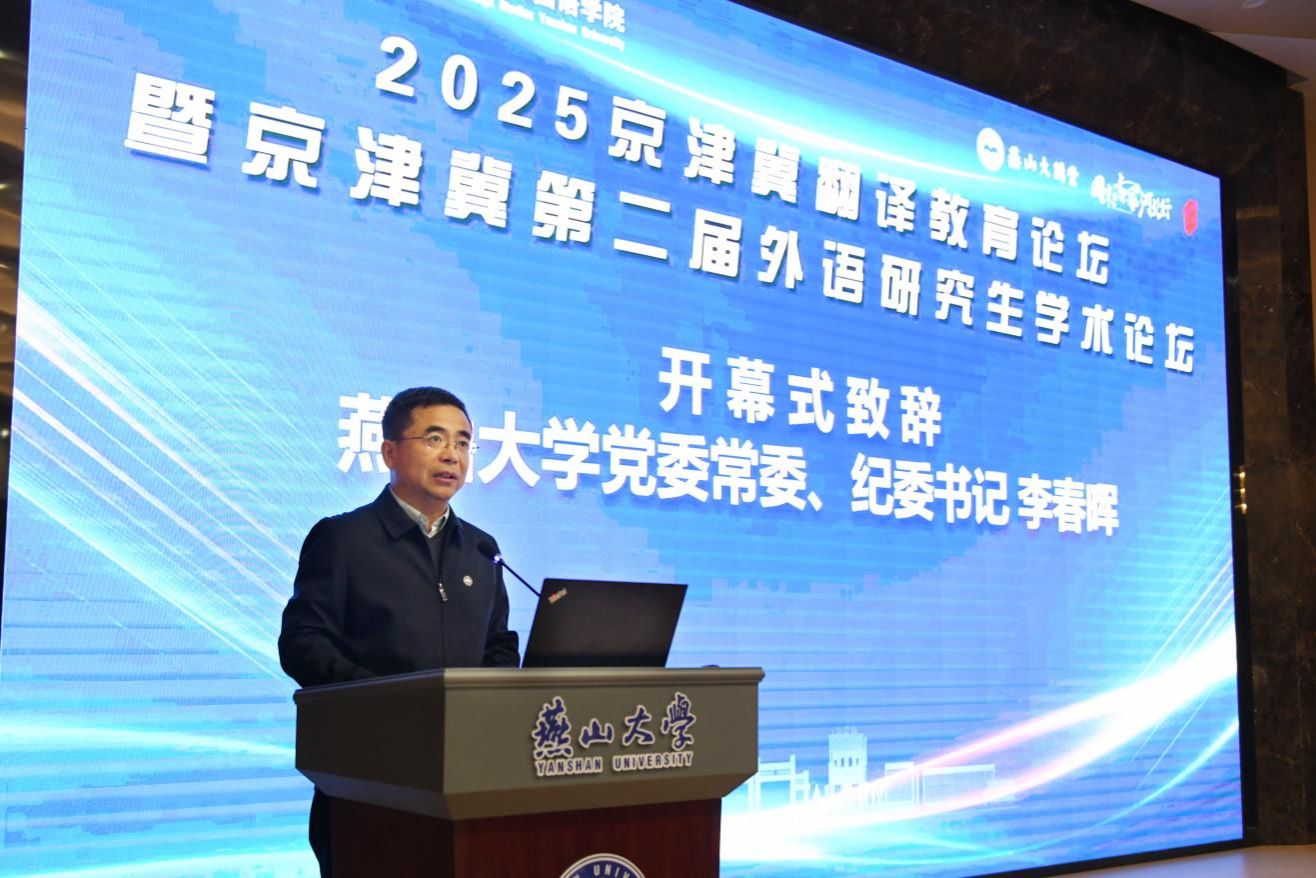 12月13日,2025年京津冀翻译教育论坛暨京津冀第二届外语研究生学术论坛(燕山大学外国语学院第六届研究生学术论坛)在燕山大学成功举行。论坛由河北省高等学校外语教学研究会指导,燕山大学主办,燕山大学外国语学院承办,天津蓝奥教育科技有限公司、福州译国译民集团有限公司、上海凌极信息技术有限公司、燕山大学研究生院、燕山大学社会科学处协办。天津外国语大学原副校长王铭玉,中国翻译协会副会长、中国外文局翻译院院长黄玉龙,燕山大学党委常委、纪委书记李春晖出席开幕式并致辞。外国语学院院长王林海主持了开幕式。来自京津冀三地及国内30多所高校、研究机构和语言服务企业的近200名专家学者、师生与会,共同聚焦新时代翻译教育高质量发展,谋划区域协同育人新篇章。