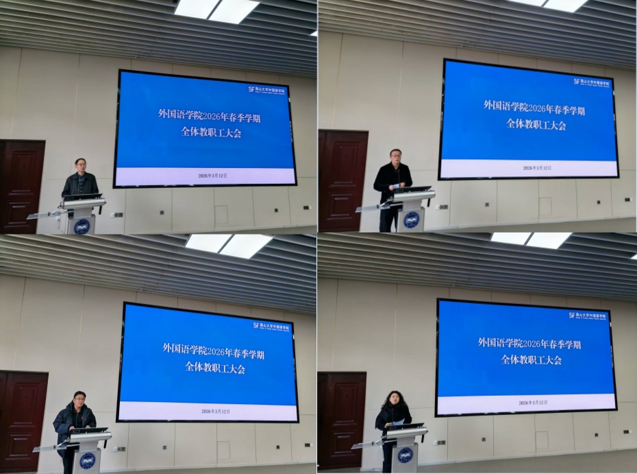 3月12日下午,外国语学院在东校区第四教学楼108召开了2026年春季学期教职工大会,学院全体教职工参加了会议。