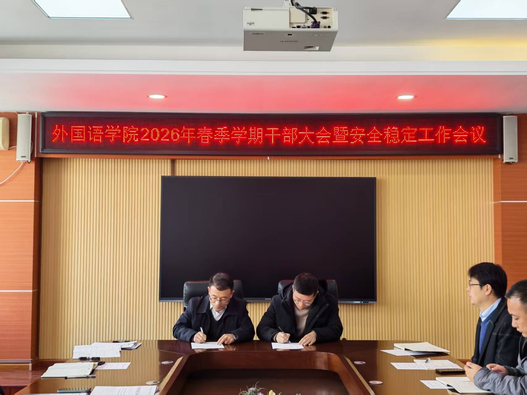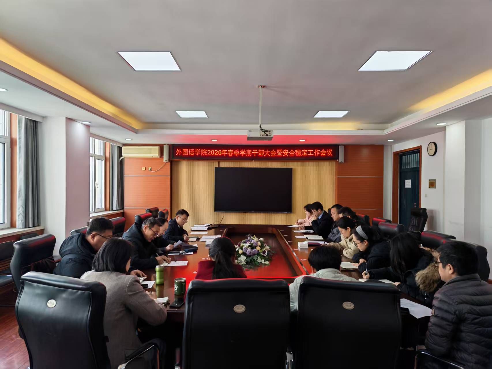 3月11日上午,外国语学院召开了2026年春季学期干部大会暨安全稳定工作会,学院领导班子成员、系主任、党支部书记、科级干部参加了会议,会议由学院党委书记屈晓阳主持。