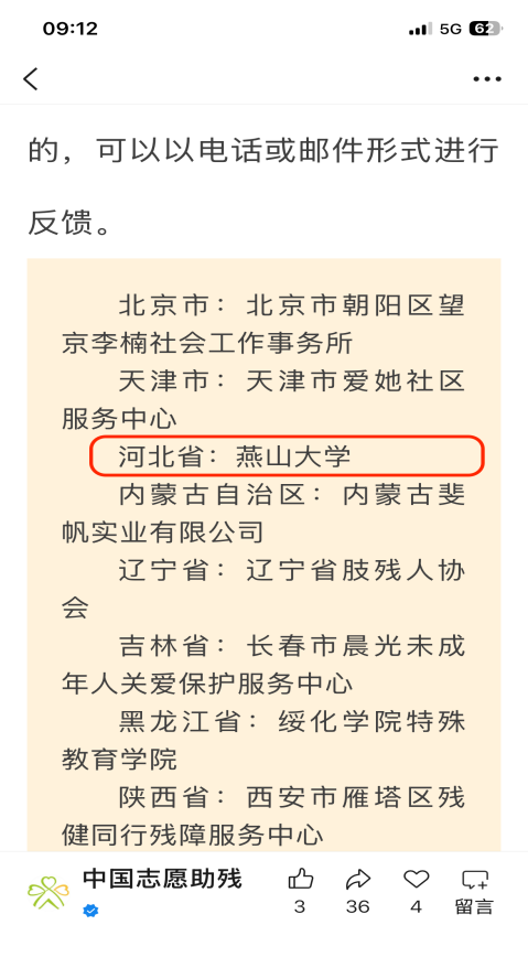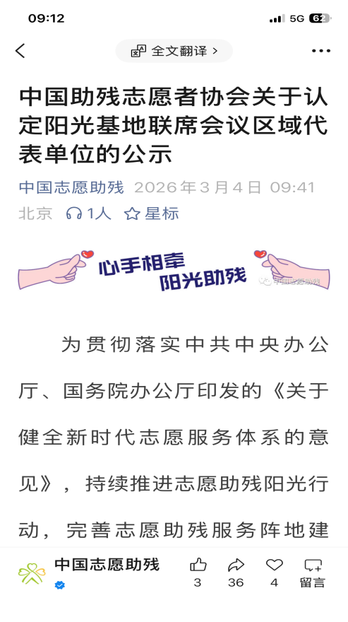 近日,中国助残志愿者协会发布《关于认定阳光基地联席会议区域代表单位的公示》,燕山大学从全国300余家阳光基地(驿站)中脱颖而出,成为首届19家联席会议区域代表单位之一。这标志着燕山大学助残志愿服务工作正式纳入国家新时代志愿服务体系建设的省级枢纽布局,肩负起示范引领、资源统筹、经验辐射的区域使命。