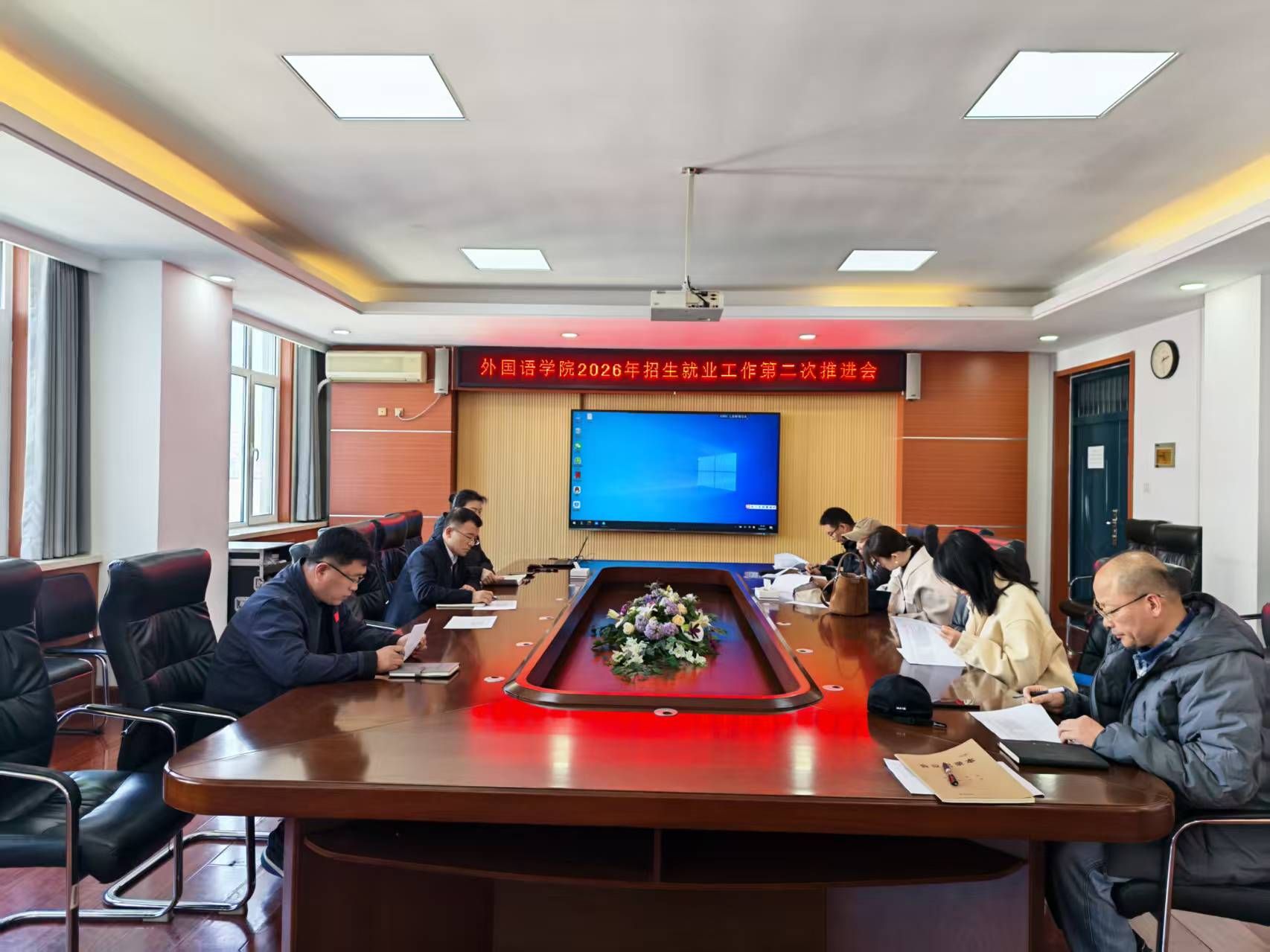为进一步抓实招生宣传、做细就业服务,破解工作中的实际问题,推动招生与就业工作协同提质,4月7日下午,外国语学院召开了2026年招生就业工作第二次推进会。学院领导班子成员、各系(室)专业负责人参加了会议,会议由外国语学院党委副书记夏亮亮主持。
