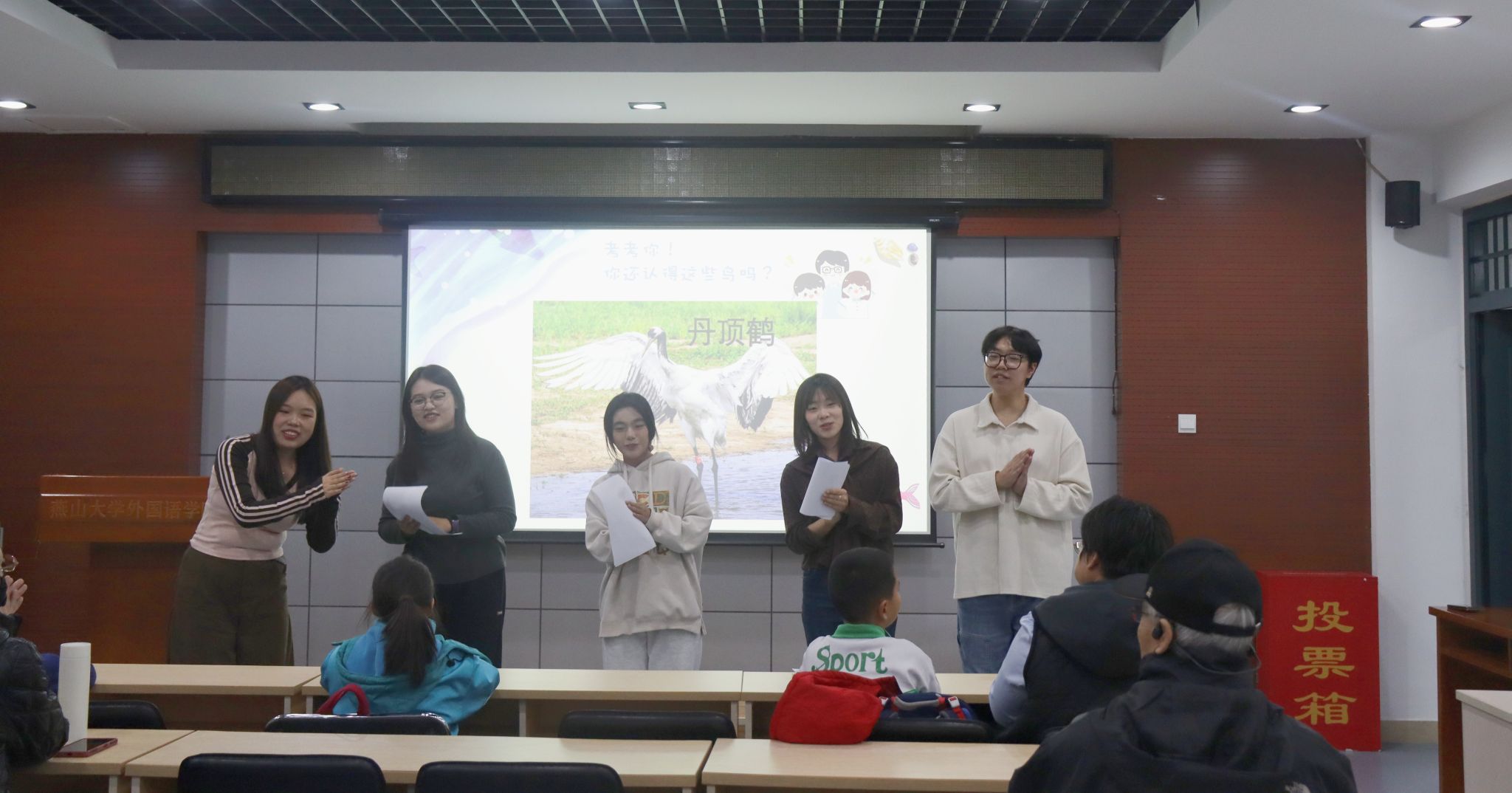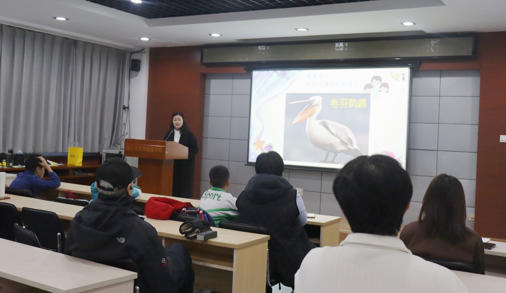 为提升教职工及其子女的生态环境保护意识,厚植生态文明理念,践行家校协同育人使命,2025年11月20日下午,外国语学院工会于东校区人文馆416报告厅成功举办“守护湿地家园 关爱候鸟迁徙”主题宣讲活动。部分教职工子女与外国语学院“鸥鸣潮声”北戴河湿地候鸟守护队志愿者齐聚一堂,在互动体验中感受自然之美,在实践参与中树立守护意识,让生态文明的种子在童心沃土中生根发芽。