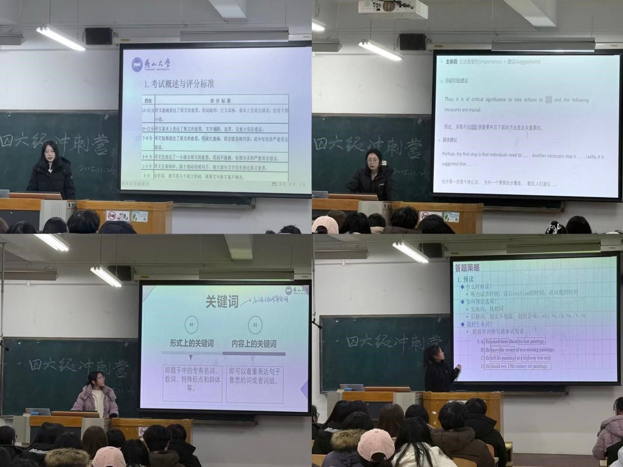 我们坚信,每一份持之以恒的努力终将收获回报。衷心祝愿全体同学在接下来的四六级考试中沉着应战,出色发挥,凭借扎实的积累与平稳的心态,斩获属于自己的理想佳绩!外国语学院将持续关注学子需求,整合优质资源,致力于通过更专业、更精准的辅导服务,为燕大学子提供有力支持。