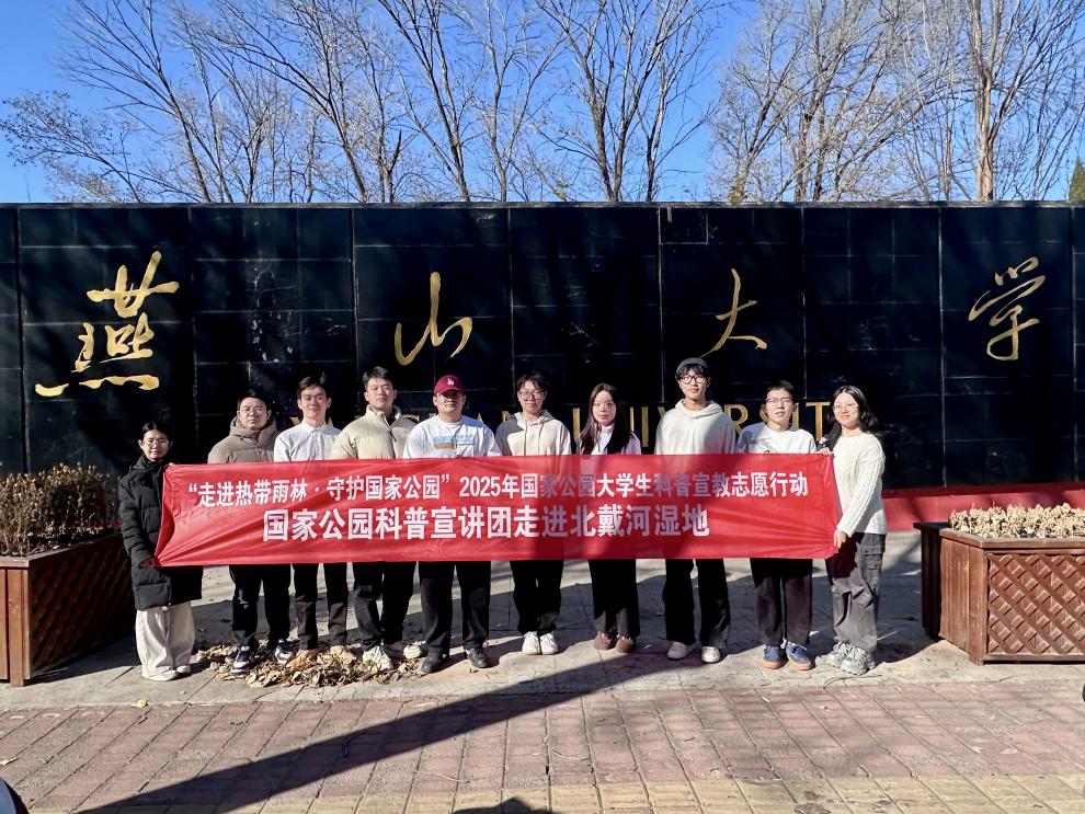 2025年,燕山大学“鸥鸣潮声”守护队成功入选以“走进热带雨林·守护国家公园”为主题的国家公园大学生科普宣教志愿行动。北戴河湿地的生态分量让来自外国语学院、文法学院、艺术学院、车辆与能源学院、信息科学与工程学院、经济管理学院等多个专业的十名学子在此汇聚,将专业知识转化为生态保护的实际行动。队长、新闻通讯员董秦将国别和区域研究的学科思维引入实践,将北戴河湿地这一“西太平洋迁飞通道”上的关键节点置于全球生态治理的格局中并加以审视。国别和区域研究的学科思维,不仅帮助团队在科普宣讲中讲好了本地故事,更以国际比较的视角引入国外候鸟保护的成熟经验,让生态守护既有家乡情怀,也有国际视野。