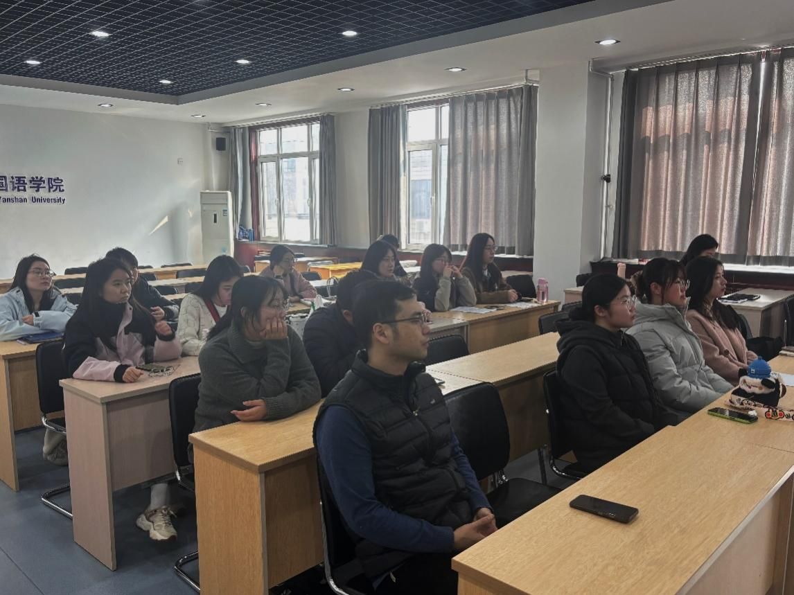 学术之道,贵在交流;治学之要,在于思辨。2026年3月26日,燕山大学外国语学院在人文馆416报告厅举办2026年研究生第一期学术沙龙。本期沙龙汇聚研究生导师与20余位研究生,以开放对话、深度分享为主旨,共同营造出浓厚的学术探究氛围。
