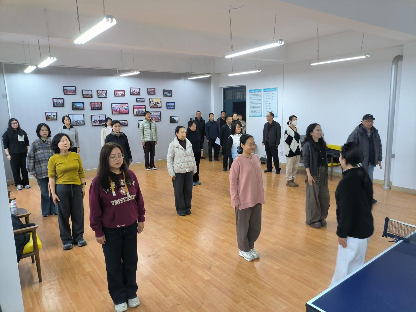 在专业老师的带领下,教职工们凝神静气、缓缓抬手、迈步、转体,在舒缓连贯的动作中放松肩颈、舒展腰背,在一呼一吸间舒缓工作压力,沉浸式体验传统养生功法的独特韵味。现场氛围轻松热烈,大家相互交流、彼此纠正,在运动中收获健康,在互动中增进情谊,充分展现了外国语学院教职工积极向上、活力满满的精神风貌。