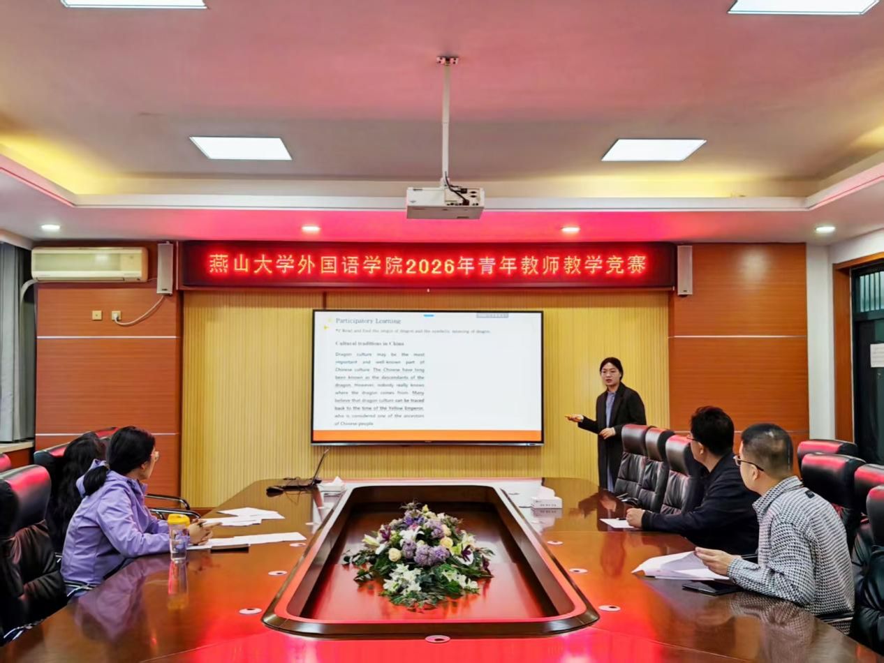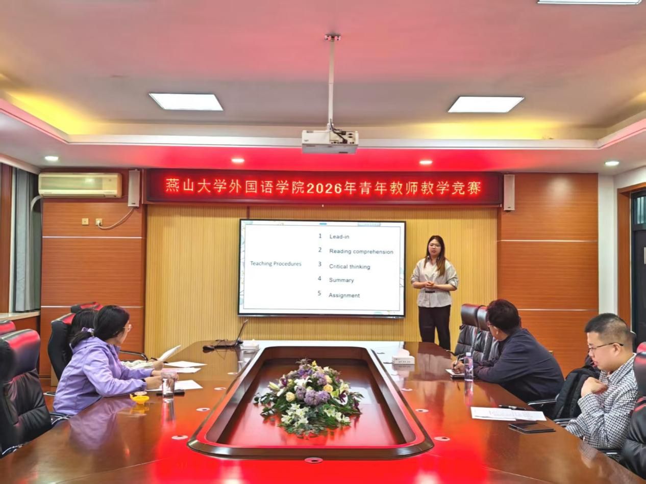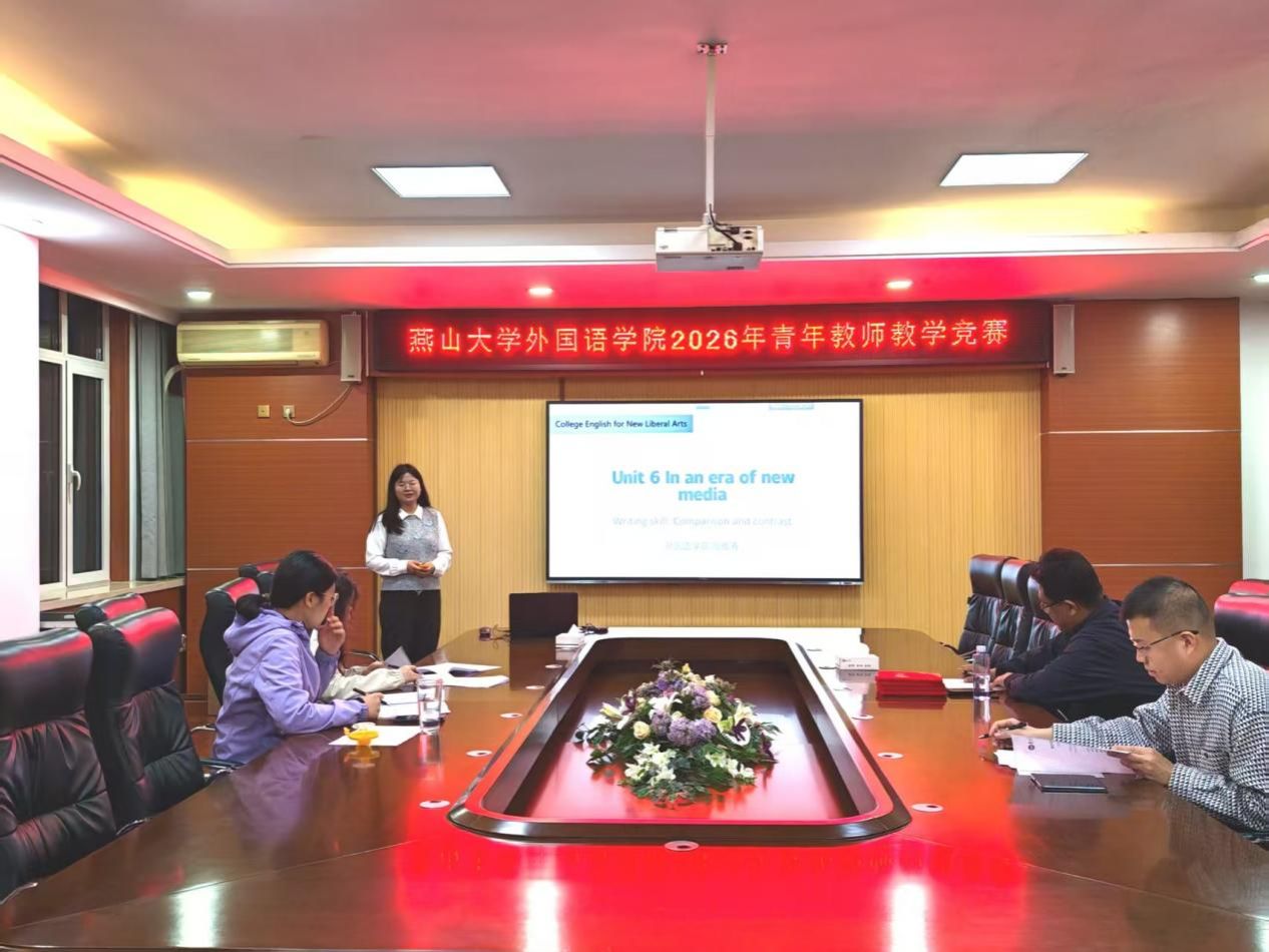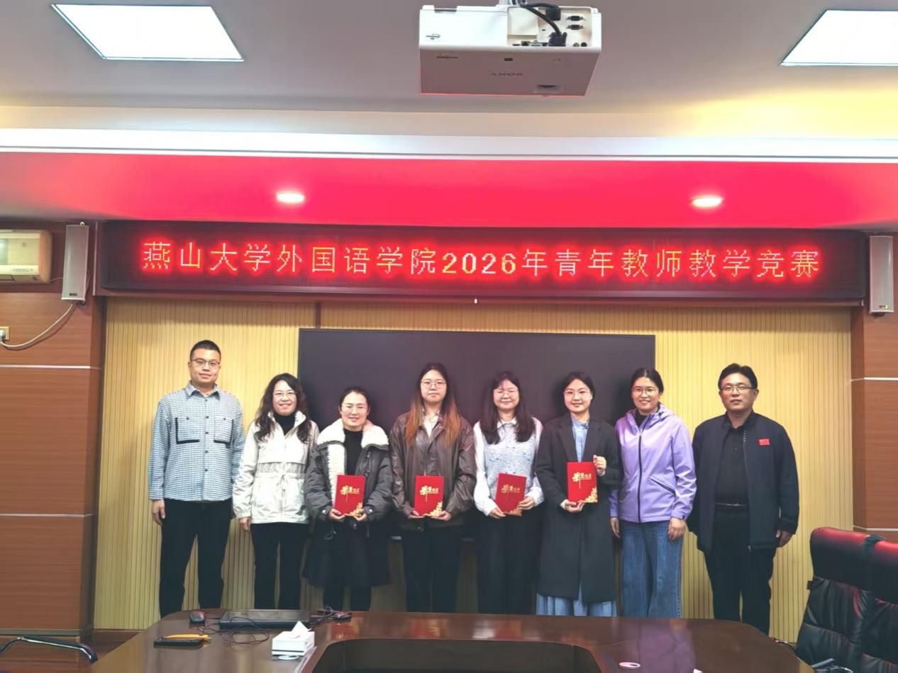 经过 3 个小时的激烈角逐与公正评审,边雅、姬佳奇两位老师凭借扎实的教学功底和优异的现场表现脱颖而出,荣获竞赛一等奖,并将代表外国语学院出征燕山大学 2026 年青年教师教学竞赛;高雅涛、郭梦涵两位老师荣获二等奖。