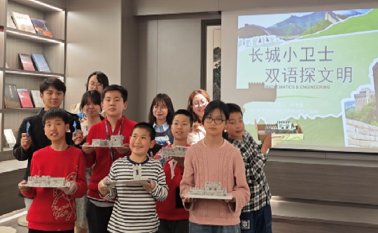 为拓宽青少年国际视野、厚植家国情怀,提升双语表达与实践能力,4 月 19 日下午,由校工会、外国语学院工会、“寓见文化”一站式学生社区工作站及英语专业“燕语童行”项目组联合举办的双语研学营(第一期),在燕山大学长城主题书店投影空间顺利开展。本次研学以“长城小卫士,双语探文明”为主题,面向全校教职工小学五至六年级子女开展公益实践,在趣味体验中解锁长城文化魅力、提升双语应用能力。